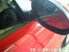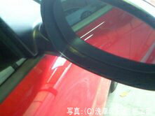 一見キレイに見えますが、ミラーの部分をちょっとずらしてみると… 奥の方に汚れが隠れていました(;>_<) このような場合は、洗車の時にブラシ等で汚れをよくかきだし、強い水流でよく流しましょう 。